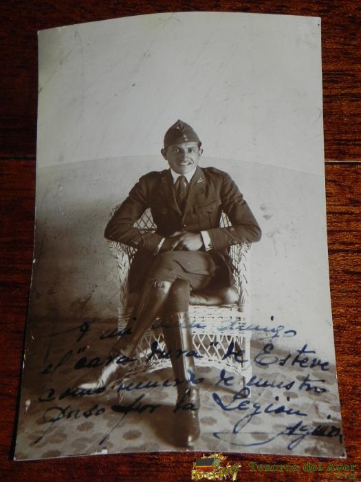 ANTIGUA FOTOGRAFIA DE TENIENTE AGUIRRE DE LA LEGION, CON DEDICATORIA Y FIRMA MANUSCRITA, TAMAÑO POSTAL.